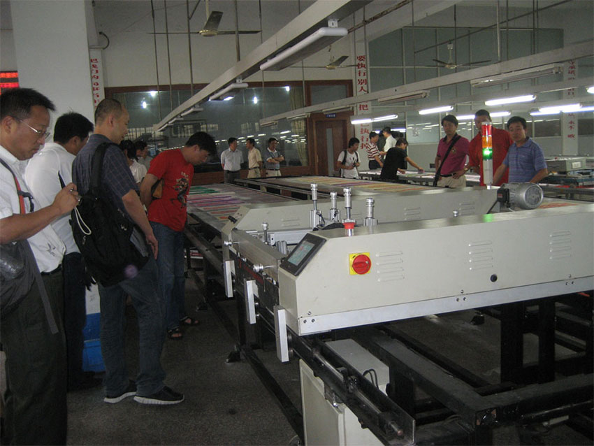 8、自動(dòng)臺(tái)板印花機(jī)的設(shè)計(jì)理念來(lái)自印花行業(yè)手工臺(tái)板人員短缺的現(xiàn)實(shí),印花面積大小根據(jù)客戶個(gè)性化要求而定制,可在原有手工臺(tái)板基礎(chǔ)升級(jí)改進(jìn),可廣泛運(yùn)用于水性膠漿、水漿、拔染、熱固油墨的印花。