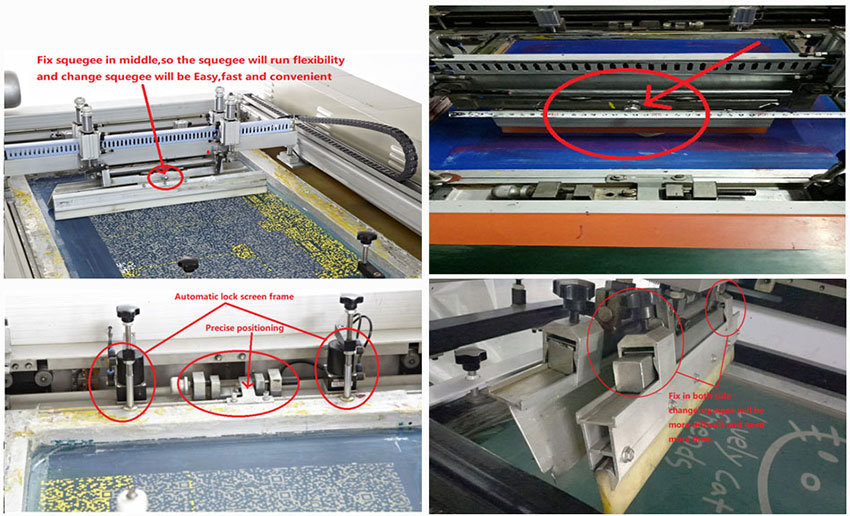 2、完美的印花刮印座一體化設(shè)計(jì),上下裝缷網(wǎng)版快速、簡(jiǎn)便,更換不同花版、花版檢查對(duì)版可直接快速目視調(diào)整;加漿料方便,無(wú)障礙,不損花版,獨(dú)特的網(wǎng)板對(duì)位系統(tǒng),上、下、左、右定位。網(wǎng)板快速定點(diǎn)裝卸操作方便。